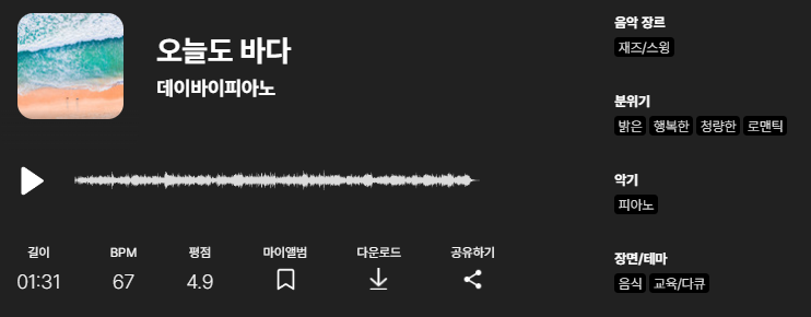 이미지 클릭 시, 해당 음원으로 넘어갑니다. 오늘은 이렇게해서